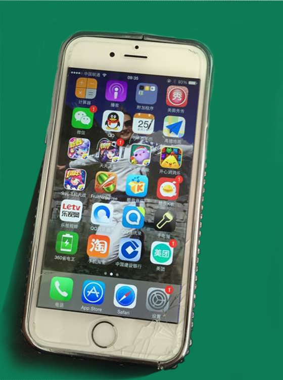 故障描述:自己平时比较习惯戴着耳机听歌,中午在公司午休,同事突然叫我,猛一回头,耳机线拉着手机直接往地板上摔去, 拿起来时就见外屏出现裂痕。